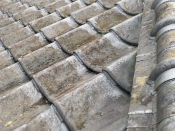 屋根も苔や藻などが付着しています
