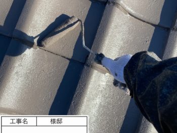 瓦 下塗り作業中