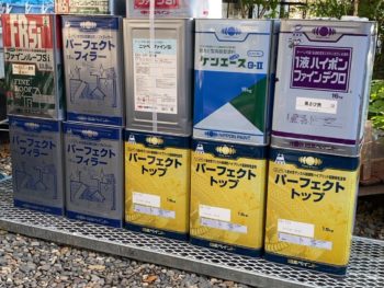 | 使用商材 | 外壁:日本ペイントパーフェクトトップ ND-103 屋根:日本ペイントファインルーフSi (トタン屋根) / 瓦は水谷ペイント水系シリコン チャコールグレー |