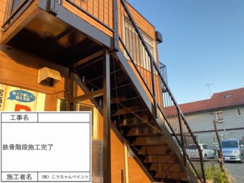 | 施工箇所 | 屋根塗装、軒天、破風板、鉄骨バルコニー面塗装、鉄骨階段塗装、玄関ドア・枠塗装、玄関屋根木部塗装 |