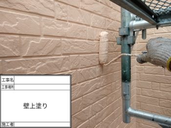 外壁上塗り施工中