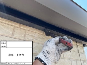 破風板下塗り施工中
