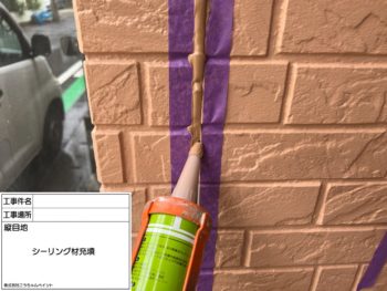 コーキング充填施工中