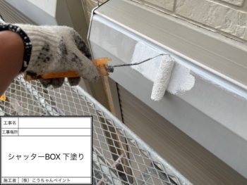 シャッターBOX下塗り施工中