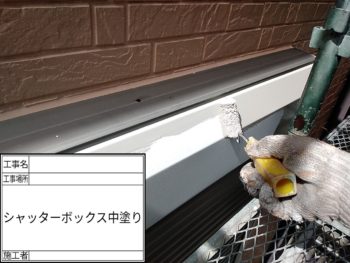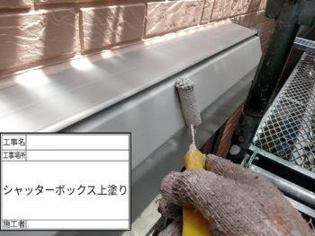 シャッターBOX上塗り施工中