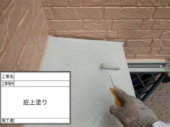 庇下塗り施工中