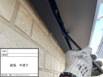 破風板上塗り施工中