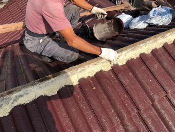 棟瓦取り直し施工中