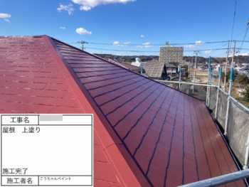 | ご提案内容 | 【とにかく汚れをなくしたい、熱さに強い遮熱塗料、価格も抑えたリーズナブルな塗料を】との事から、何種類かのご提案の中から 今回【ASTEC / アステック塗料】をお選びいただきました。 前回は白っぽいお色を選ばれたため、今回は色を付け赤っぽいお色のバーガンディーをお選びいただきました。 |