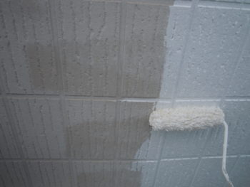 外壁下塗り後、中塗り施工中です。
