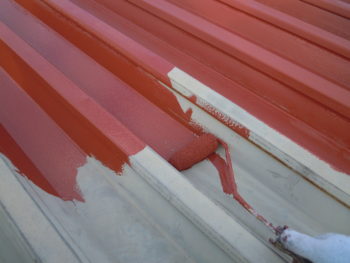 屋根、錆止め施工中です。