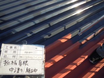 屋根、中塗り施工中です。