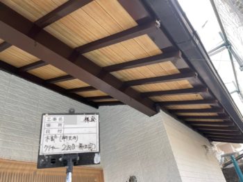 | 施工箇所 | 外壁塗装 軒天 破風板 雨戸塗装 水切り 母屋の木軒天 |