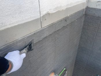 帯を全て撤去し、施工前と同様、外壁のお色を上下で分けました!