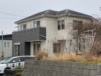 外壁の色は、今のイメージと変えずにアイボリーにして、バルコニーは黒グレー、屋根は黒をご希望されました。