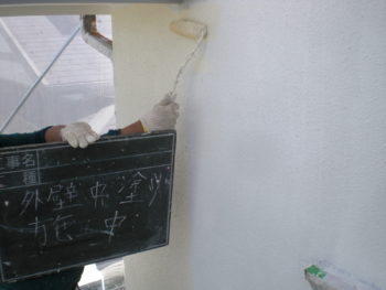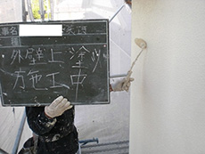 外壁 上塗り施工中