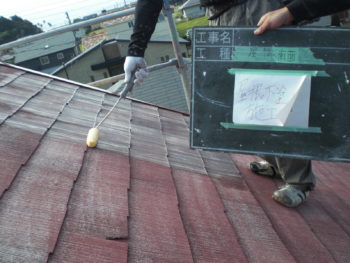 屋根 下塗り 施工中