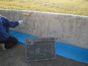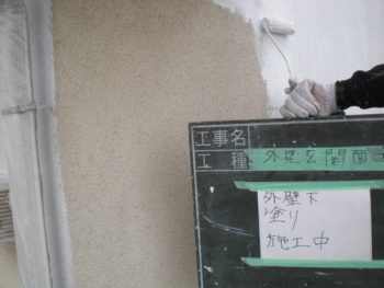 外壁 下塗り施工中