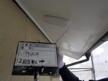 軒天中塗り施工中
