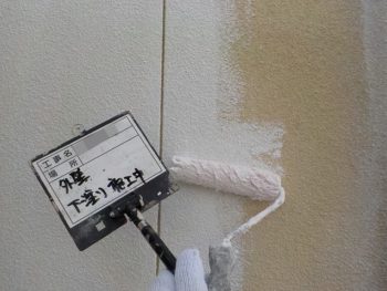外壁下塗り施工中