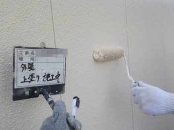 外壁上塗り施工中