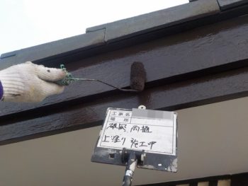 軒天下塗り施工中