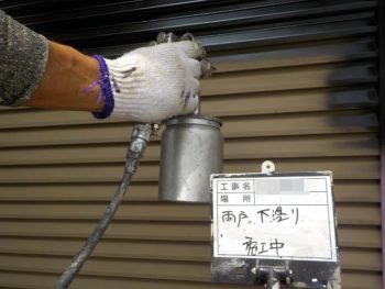 雨戸下塗り施工中