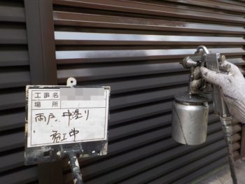 雨戸上塗り施工中
