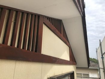 破風板の塗装剥がれも目立ちます。