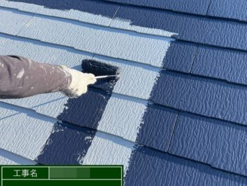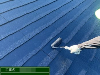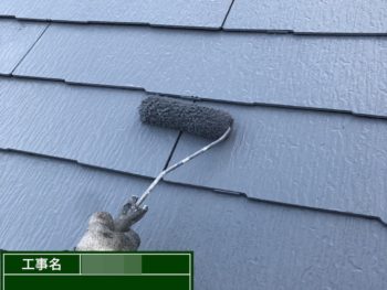 屋根中塗り施工中