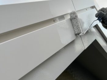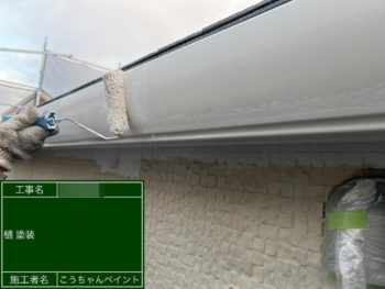 軒天塗装施工中