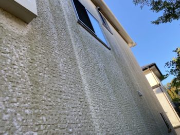 | ご提案内容 | お客様が気にされていました外壁の汚れは、特に日が当たらない北面にコケが多く付着していました。北面は日陰で汚れが付きにくいため、多くの方がとても気になる面でもあります。塗装前には丁寧に高圧洗浄で汚れを落とし綺麗にしてから施工を開始します。 数ある塗料メーカーと様々な性能の中から、今回いただきましたご要望、【コケやカビなどの汚れがつきにくい+暑さをしのぐ】から最適な塗料をお選びいただきました。 【外壁を綺麗に、永く守り続けてくれる塗料】フッ素塗料での施工内容になります。 |