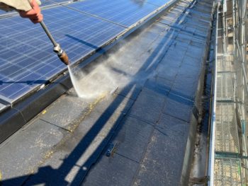 屋根高圧洗浄施工中