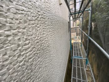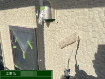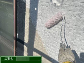 外壁中塗り施工中