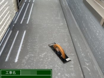 ベランダ防水トップ施工中