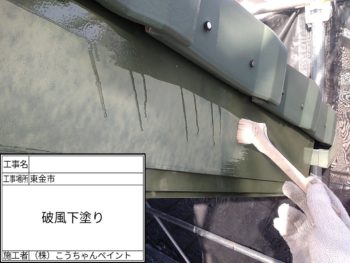破風板下塗り施工中