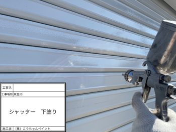 シャッター下塗り施工中