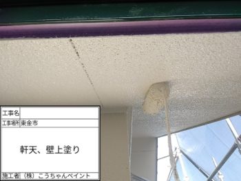 軒天・外壁上塗り施工中