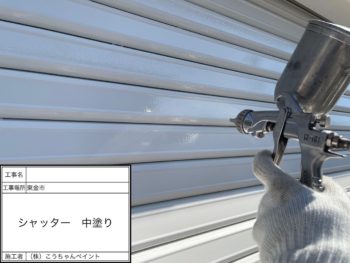 シャッター中塗り施工中