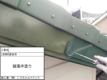 破風板上塗り施工中