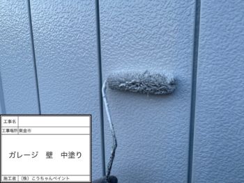 ガレージ外壁中塗り施工中