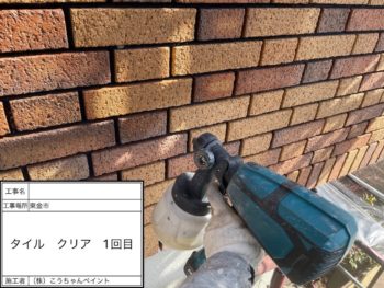 タイルクリヤー塗装1回目施工中