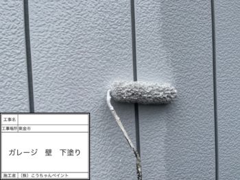 ガレージ外壁下塗り施工中