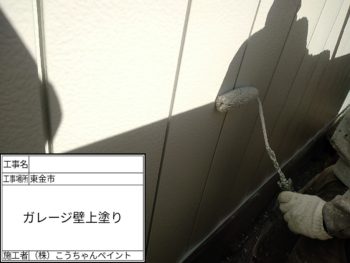 ガレージ外壁上塗り施工中