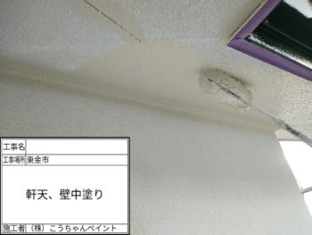 軒天・外壁中塗り施工中
