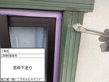窓枠下塗り施工中