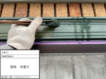 窓枠中塗り施工中