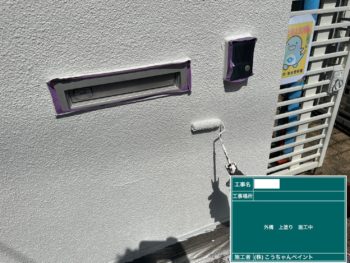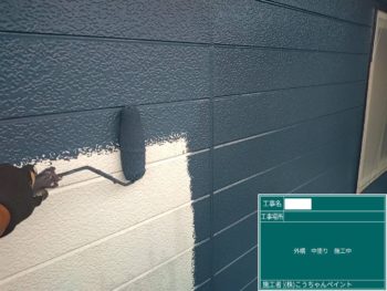 外壁中塗り施工中