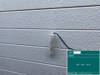 外壁下塗り施工中