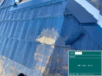 屋根中塗り施工中